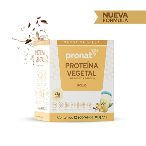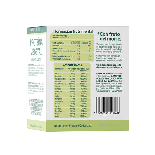 Proteína Vegetal Sabor Vainilla, Caja con 12 sobres de 30 gramos